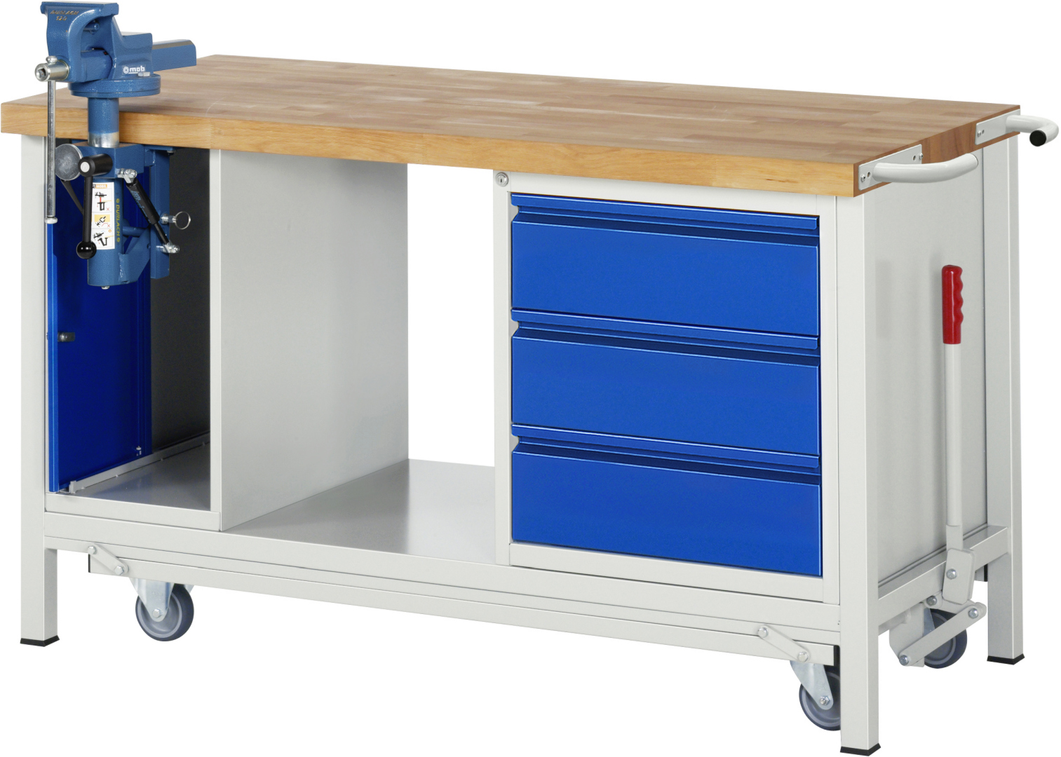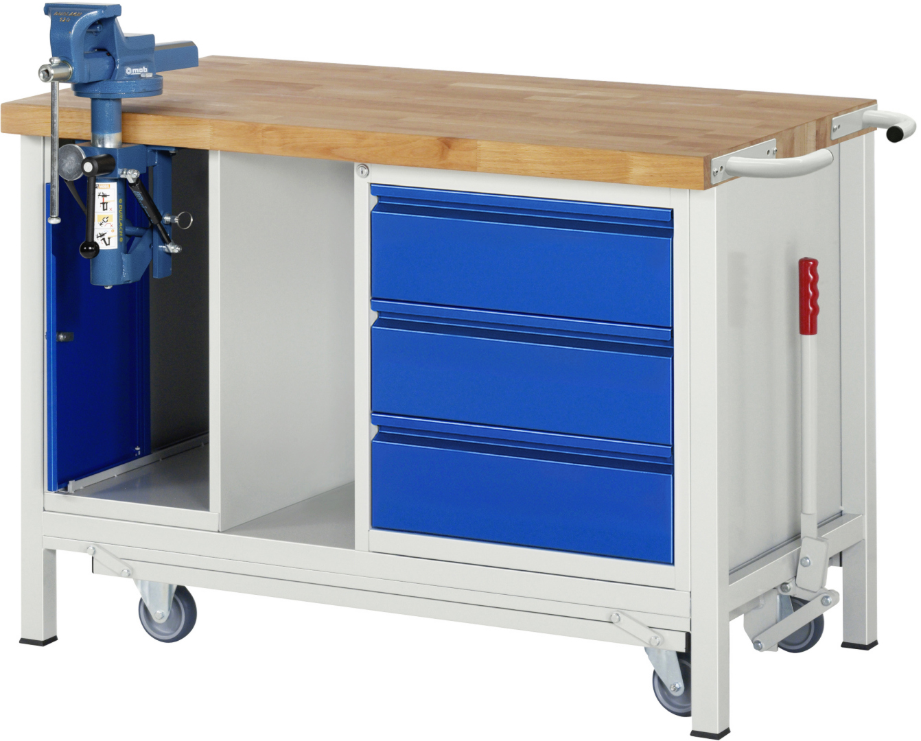 - 1 x Einschiebetür, dahinter 1xSchraubstock (Backenbreite 120mm) mit Klapplift.