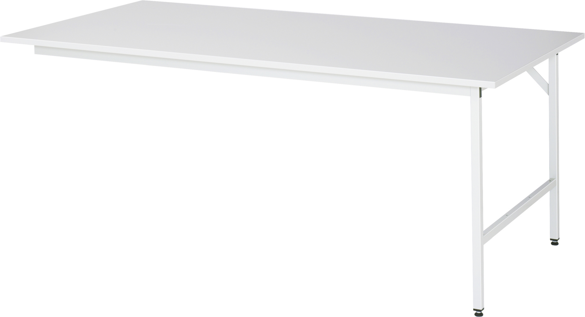 - 2-Fuß Gestell mit einem Gestellfußpaaren aus Profil-Stahlrohr (30x30x2 mm) inkl. Tiefenverstrebungen (oben und unten).Gestellfüße unten mit Abschlusselement inkl. Höheneinstellung. Querstreben aus Profil-Stahlrohr (50x25x2 mm) oben unter der Arbeitsplatte (vorne und hinten). Aussteifungstraversen hinten (links und rechts) als Verbindung zwischen Gestellfußpaar und hinterer Querstrebe. Die Gestellfüße sind vorbereitet für die Aufnahme/Nachrüstung eines Rollensatzes.