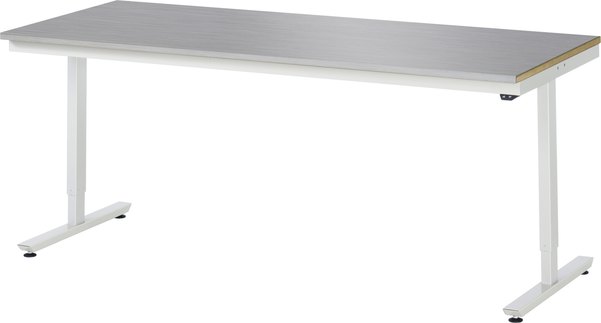 - 2 Hubsäulen zur stufenlosen elektrischen Höhenverstellung per Knopfdruck. Nivellierbare Füße sichern einen festen Stand durch eine millimetergenaue Anpassungsmöglichkeit an den Boden.