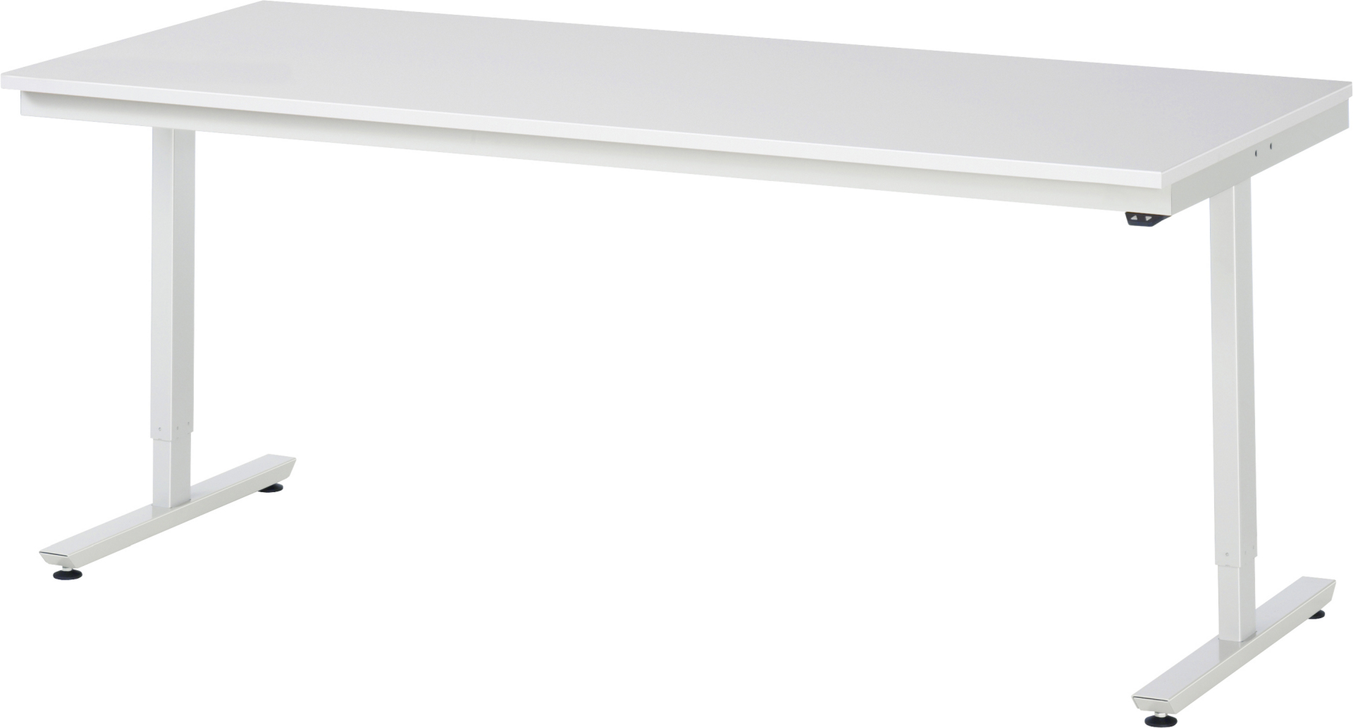 - 2 Hubsäulen zur stufenlosen elektrischen Höhenverstellung per Knopfdruck. Nivellierbare Füße sichern einen festen Stand durch eine millimetergenaue Anpassungsmöglichkeit an den Boden.