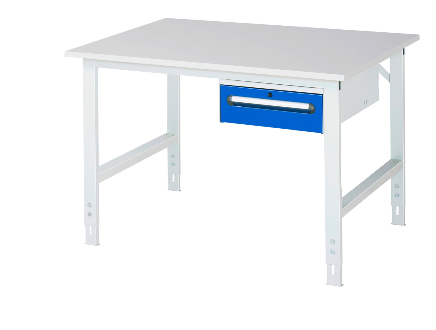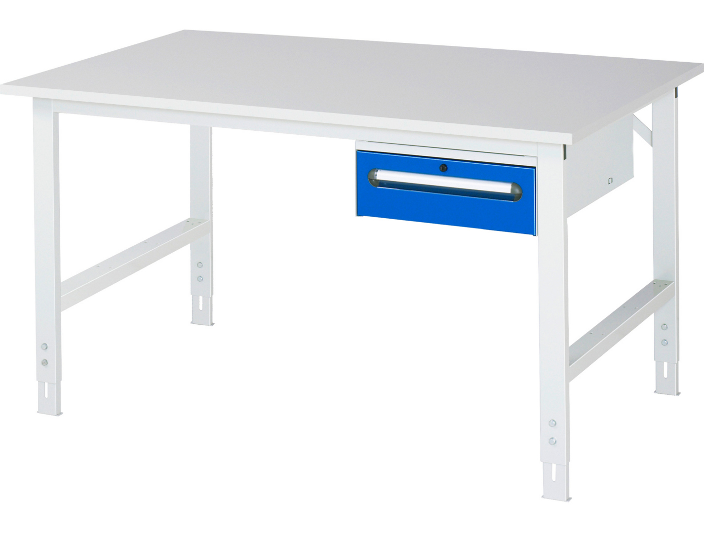 - Hinweis: Dieser Grundtisch (Komplettmodell) kann mit einem Anbautisch derselben Tiefe ergänzt werden.