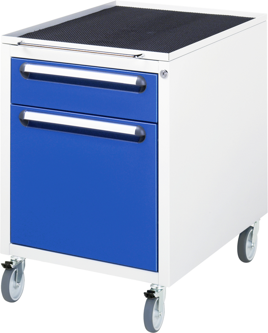 - mit Roll-Container E (B490xT600xH690mm, Schloss mit 2 Schlüsseln und Zentralverschluß) mit 2 x Schublade 1x120, 1x360 mm.