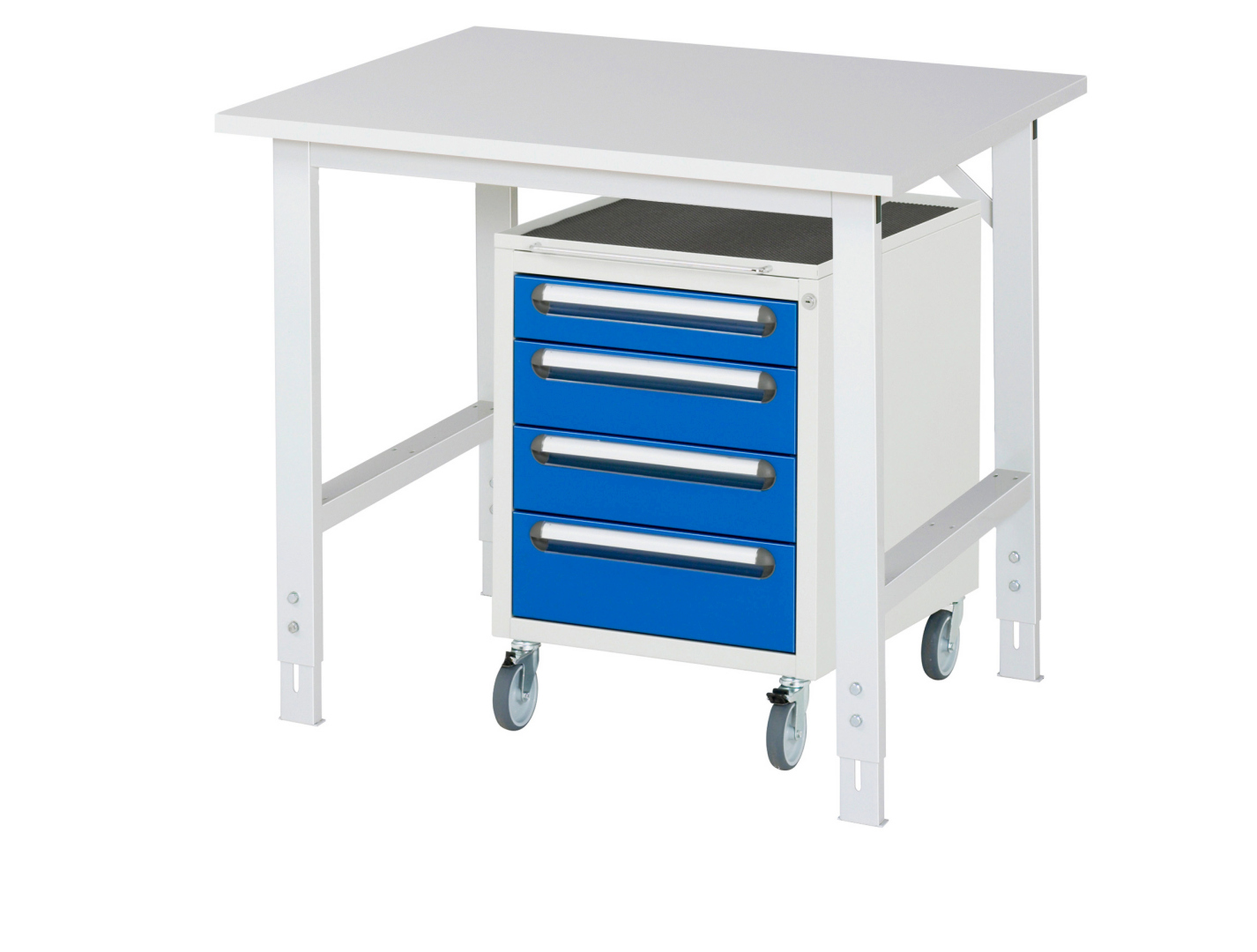 - mit Roll-Container E (B490xT600xH690mm, Schloss mit 2 Schlüsseln und Zentralverschluß) mit 4 x Schublade 1x90, 2x120, 1x150 mm.