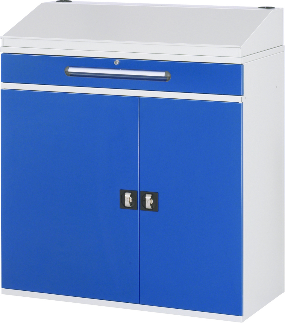 - Kleinfach (Höhe 120 mm) mit Schublade (abschließbar). Schublade B1020 x T400 x H120 mm (Auszug 100 %, Tragkraft 35 kg, abschließbar), inkl. Beschriftungsstreifen.