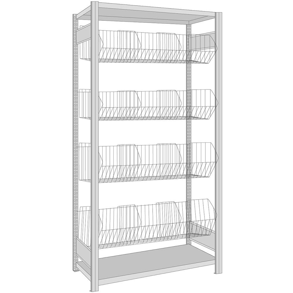 BERT-Kleinteileregal mit Gitterkörben und Stahlfachboden - Grundfeld