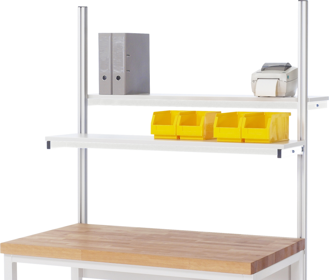- Montage an: System-Stützen von vorne, System-Stützen von hinten. Die Einbauhöhe ist stufenlos wählbar. Die Montage ist auch vor oder hinter einer Lochplatte möglich. Bei zusätzlicher Verwendung einer Halteschiene kann diese als hintere Anschlagleiste genutzt werden.