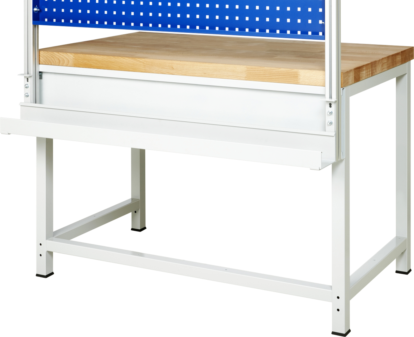 - Montage: Durch Verschrauben an die Tischplatte oder an System-Stützen.
