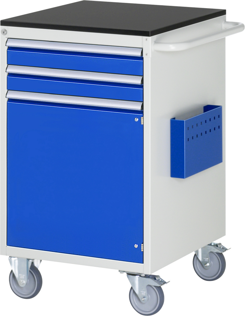 - Dokumententasche B325 x T55 x H200 mm an der rechten Seite angebracht. Vorderseite mit 4-Kant Systemlochung (Lochung 10x10 mm, Abstand Lochmitte-Lochmitte 38 mm) zur Aufnahme von Lochplatten-Zubehör.