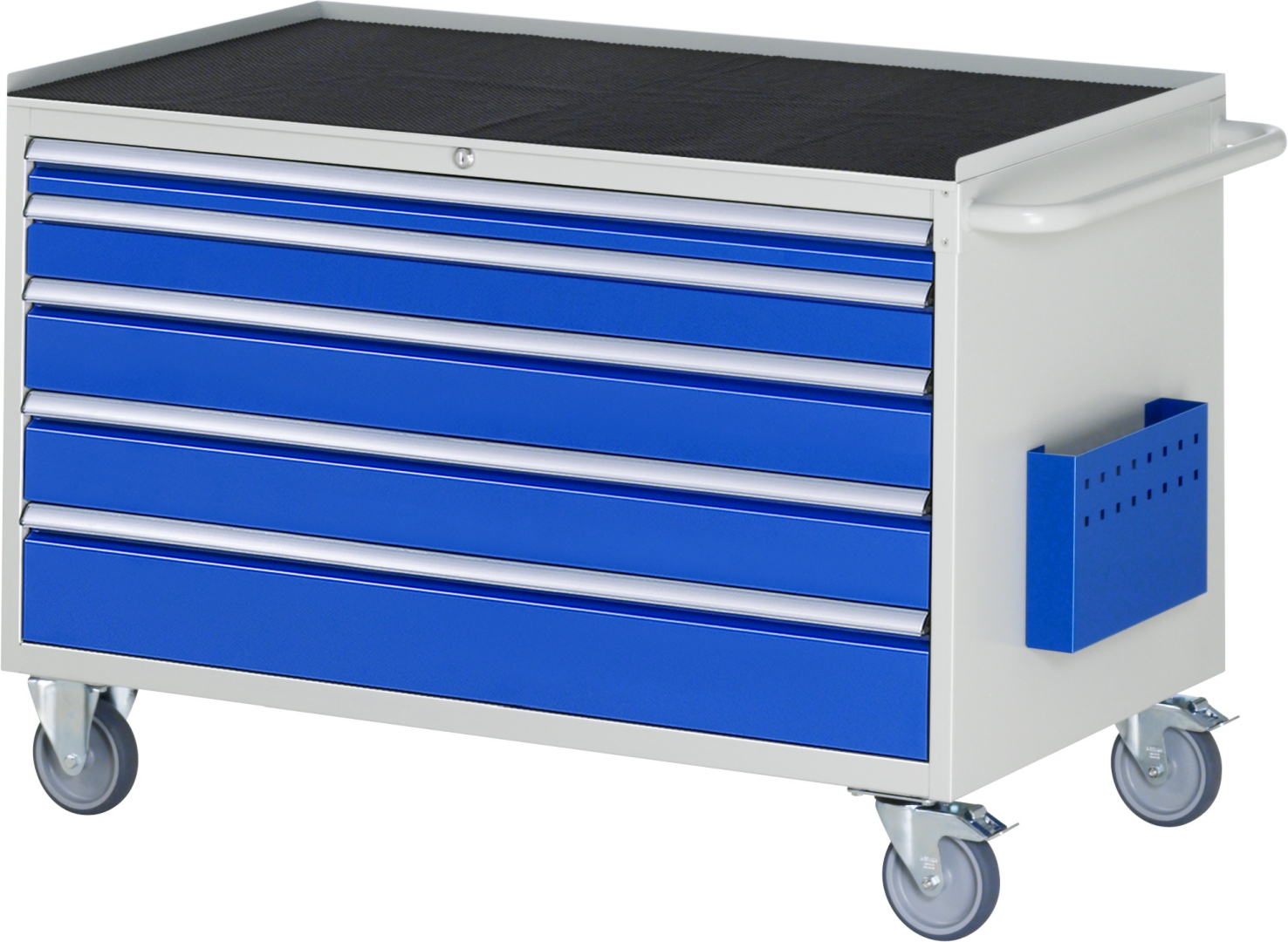 - Schrank oben inkl. Metallauflage mit 3-seitigem Abrollrand und Anti-Rutsch-Matte, Höhe 25 mm.