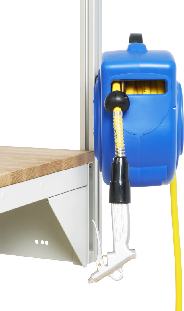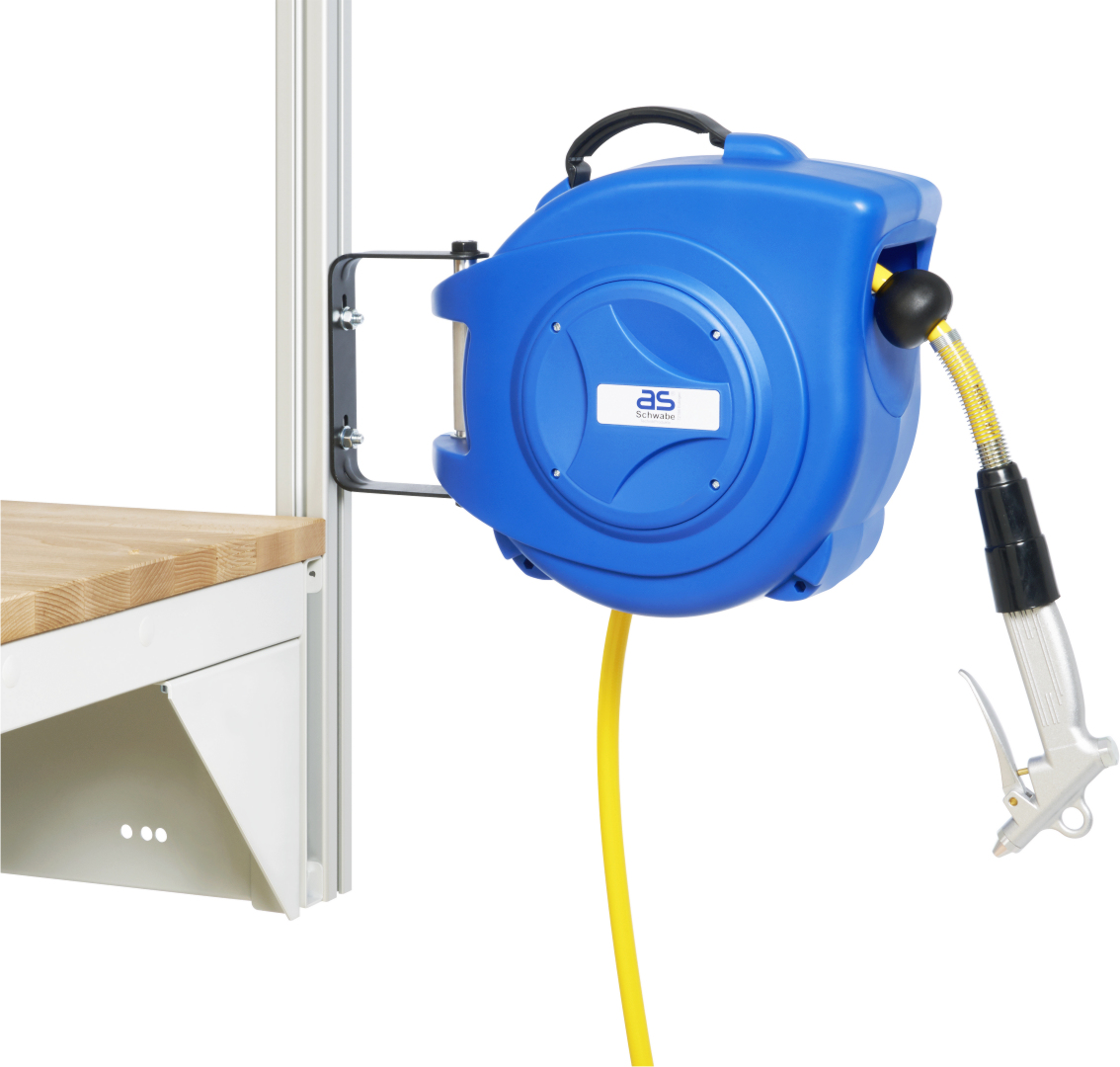- Automatischer Druckluftaufroller mit komfortabel schwenkbarer Wandbefestigung/Systemstützenbefestigung nicht zum Abnehmen.