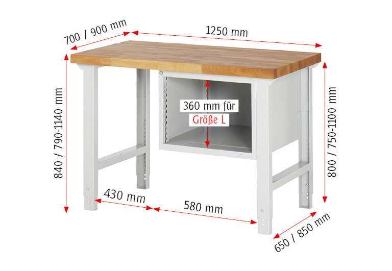 - Systemunterbau, B1250 x T650 x H800 mm.