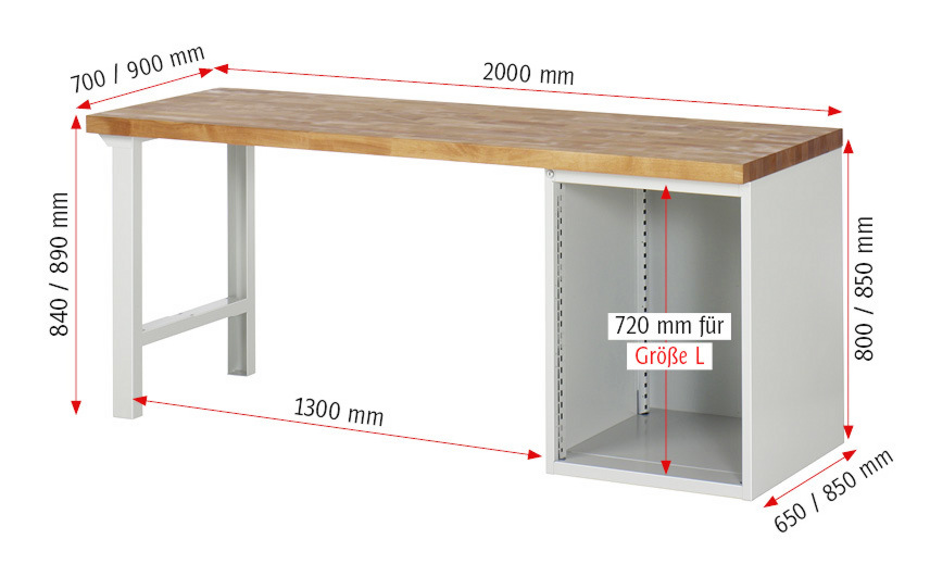 - Systemunterbau, B2000 x T650 x H800 mm.