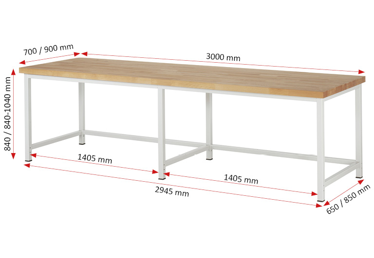 - Systemunterbau, B2945 x T650 x H800-1000 mm.