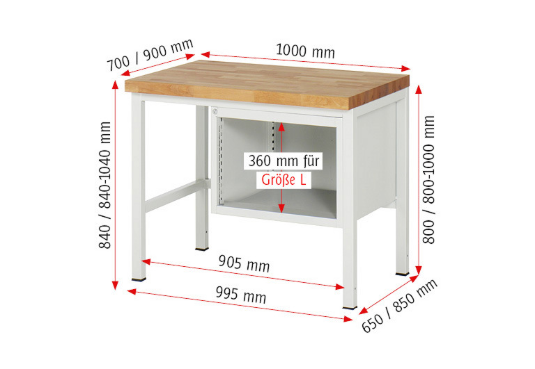 - Verstrebungen aus C-Profil (40x40x2 mm)Gestellfüße mit Abschlusselementen und Anti-Rutsch-Noppen