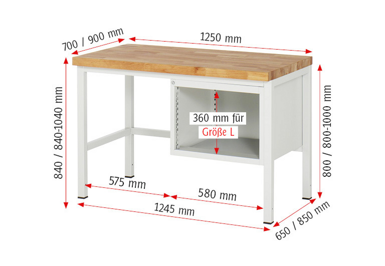 - Systemunterbau, B1245 x T650 x H800 mm.