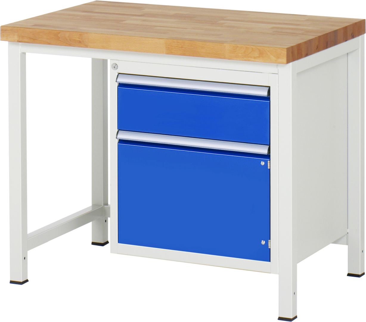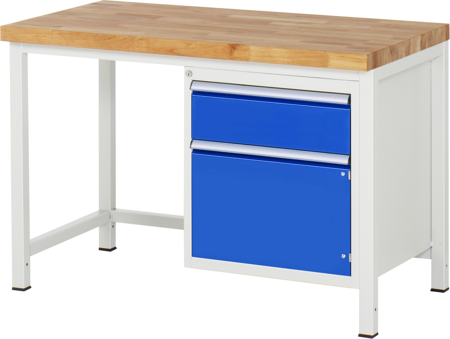 - 4-Fuß Schweißgestell mit zwei Gestellfußpaaren aus Profil-Stahlrohr (45x45x2 mm) inkl. Tiefenverstrebungen (oben und unten). Gestellfüße unten mit Abschlusselement inkl. Anti-Rutsch-Noppe für sicheren Stand. Querstreben aus C-Profil (40x40x2 mm) oben unter der Arbeitsplatte (vorne, hinten) sowie unten (hinten). Die Gestellfüße sind vorbereitet für die Aufnahme/Nachrüstung einer Höhenverstellung und/oder eines Rollensatzes.