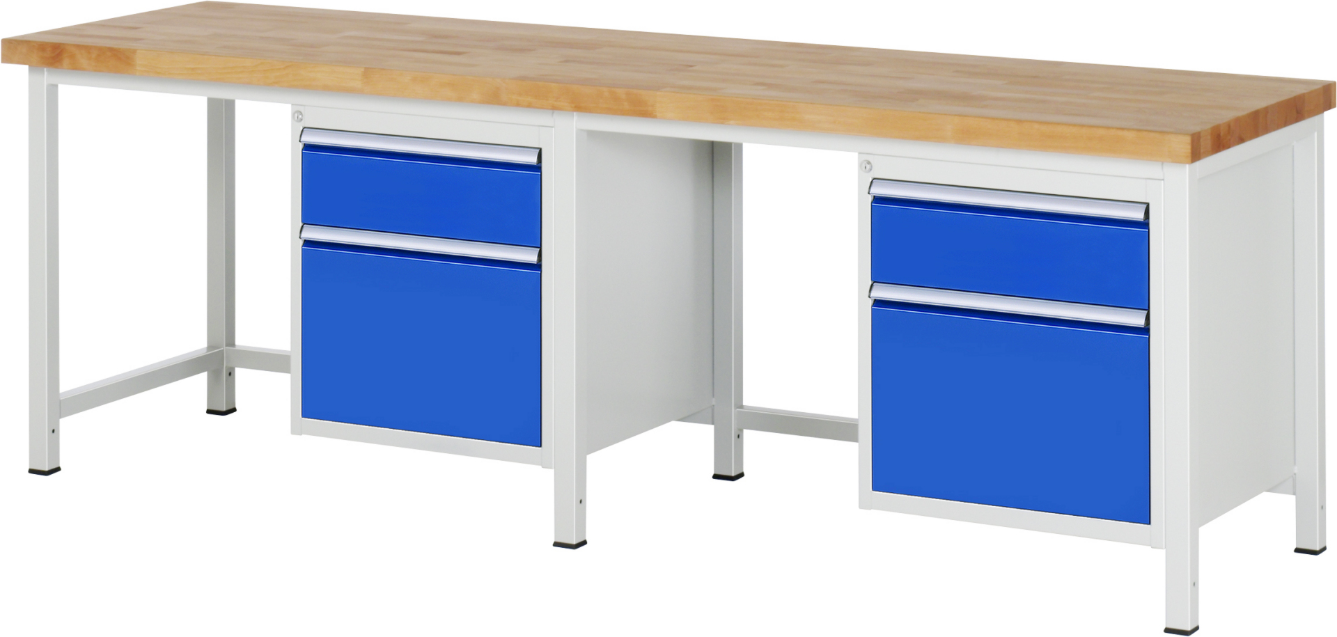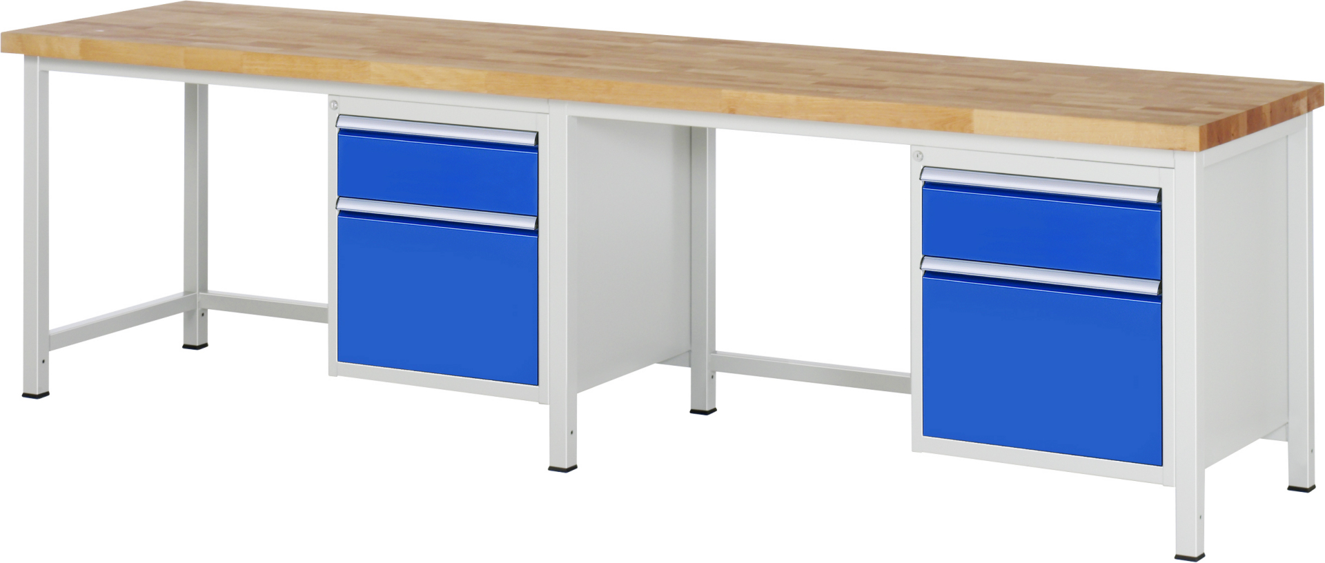 - 4-Fuß Schweißgestell mit zwei Gestellfußpaaren aus Profil-Stahlrohr (45x45x2 mm) inkl. Tiefenverstrebungen (oben und unten). Gestellfüße unten mit Abschlusselement inkl. Anti-Rutsch-Noppe für sicheren Stand. Querstreben aus C-Profil (40x40x2 mm) oben unter der Arbeitsplatte (vorne, hinten) sowie unten (hinten). Die Gestellfüße sind vorbereitet für die Aufnahme/Nachrüstung einer Höhenverstellung und/oder eines Rollensatzes.