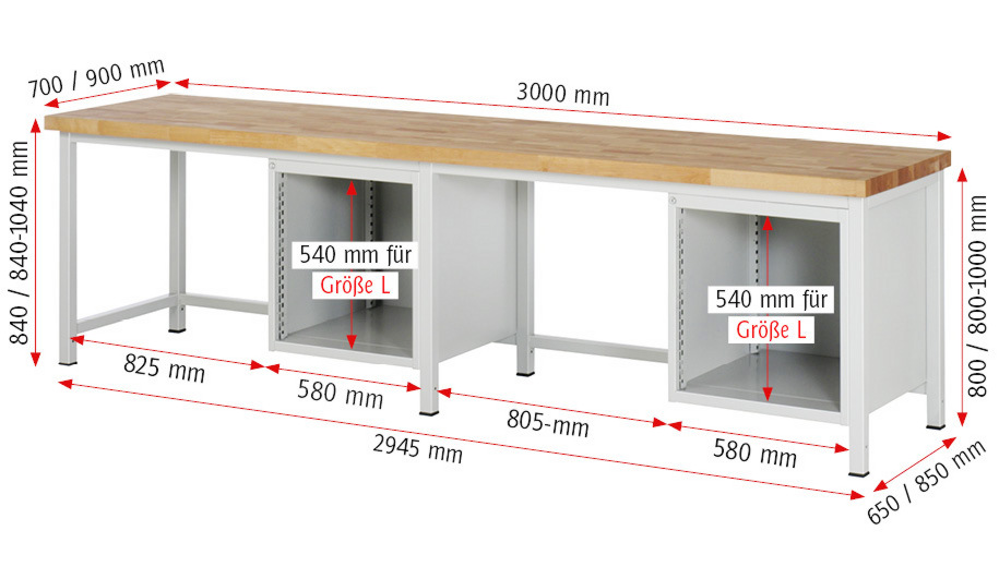 - Systemunterbau, B2945 x T650 x H800 mm.