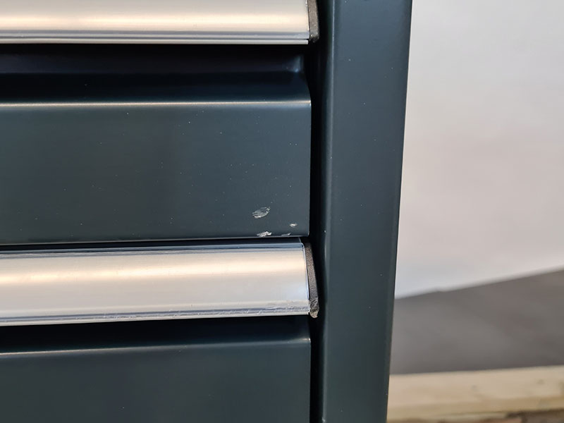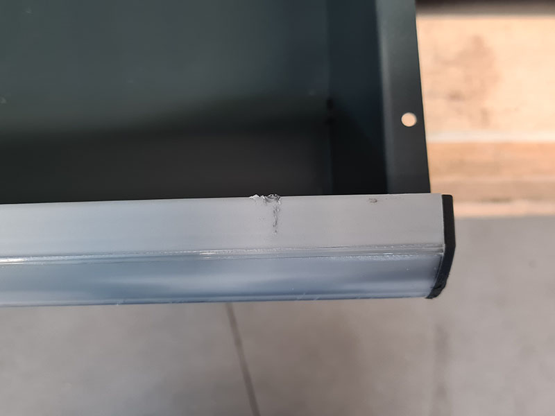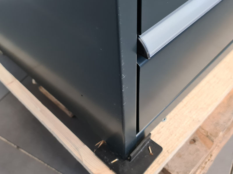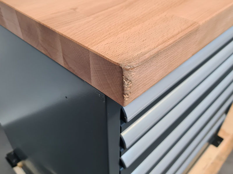 - Nicht vollfunktionsfähige Einzelauszugssicherung (Schubladen trotzdem funktionstüchtig)