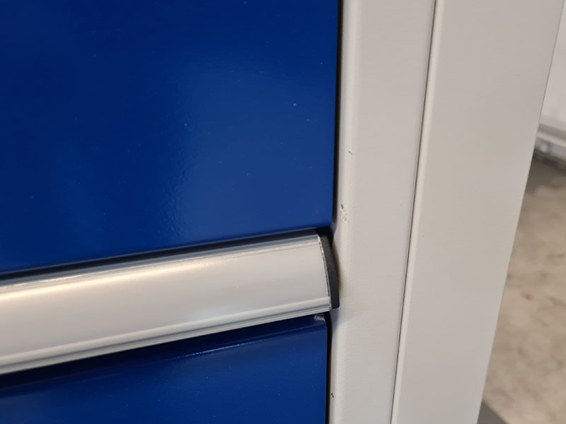 - Durchgehende Griffleiste ErgoScript®: Stahlblechbasis mit alufarbenem Overlay und integrierter Klarsichtabdeckung (inkl. Beschriftungsstreifen).