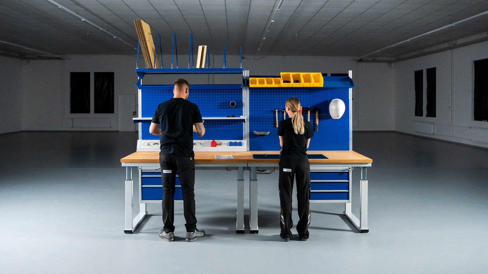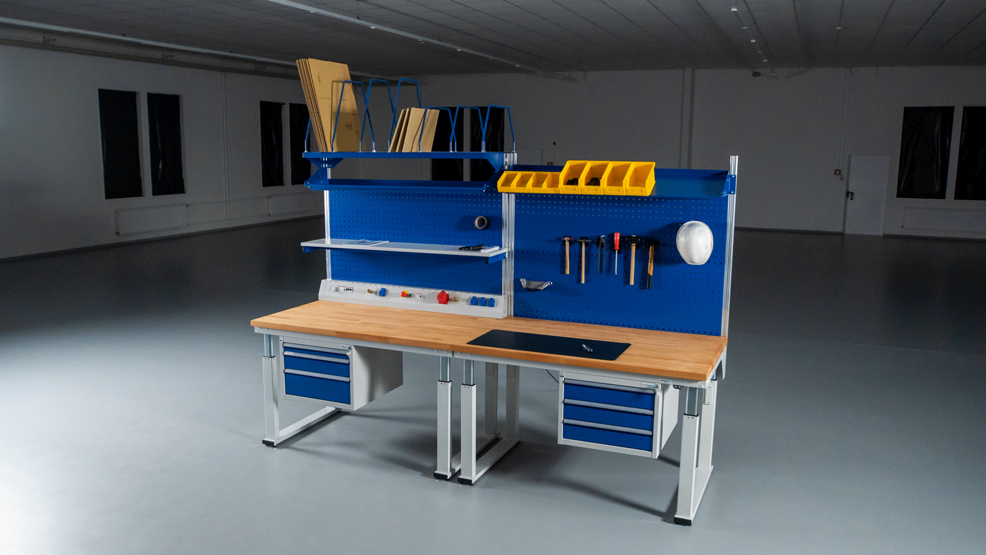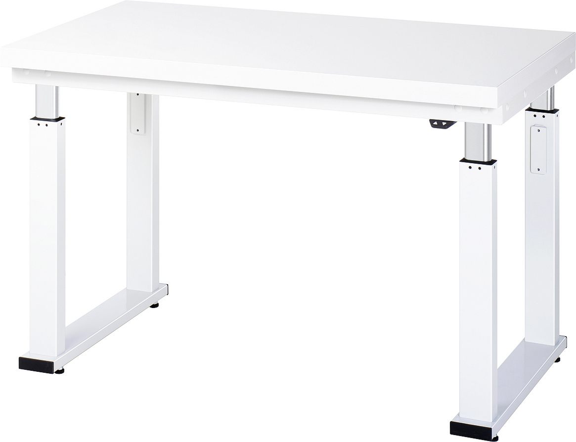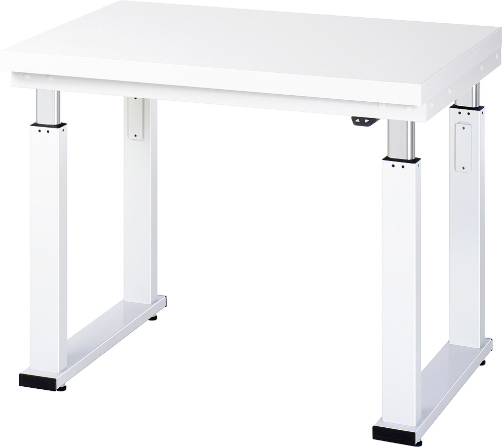 - Arbeitsplatte mit 0,8 mm starkem, lichtgrauen Hartlaminat-Belag (HPL). Stärke der Arbeitsplatte 40 mm.