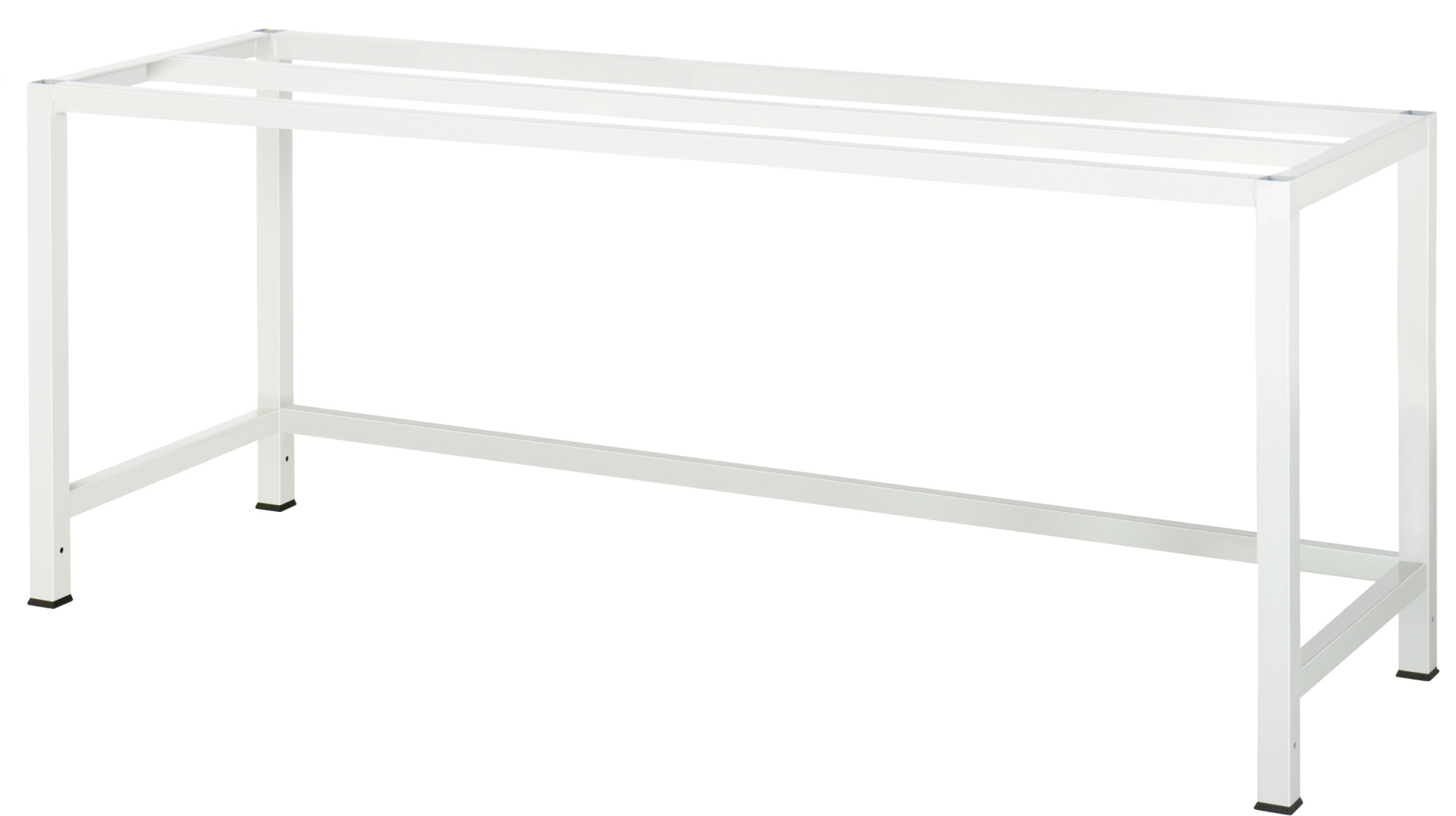 - 4-Fuß Schweißgestell mit zwei Gestellfußpaaren aus Profil-Stahlrohr (45x45x2 mm) inkl. Tiefenverstrebungen (oben und unten). Gestellfüße unten mit Abschlusselement inkl. Anti-Rutsch-Noppe für sicheren Stand. Querstreben aus C-Profil (40x40x2 mm) oben unter der Arbeitsplatte (vorne, mitte, hinten) sowie unten (hinten).