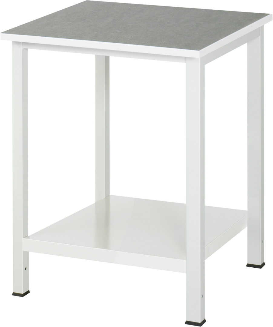 - 4-Fuß Schweißgestell mit zwei Gestellfußpaaren aus Profil-Stahlrohr (45x45x2 mm) inkl. Tiefenverstrebungen (oben und unten). Gestellfüße unten mit Abschlusselement inkl. Anti-Rutsch-Noppe für sicheren Stand. Querstreben aus C-Profil (40x40x2 mm) oben unter der Arbeitsplatte (vorne, mitte, hinten) sowie Ablageboden unten (Tiefe 650 mm hinten bündig miTSystemunterbau, Fachhöhe 620 mm).
