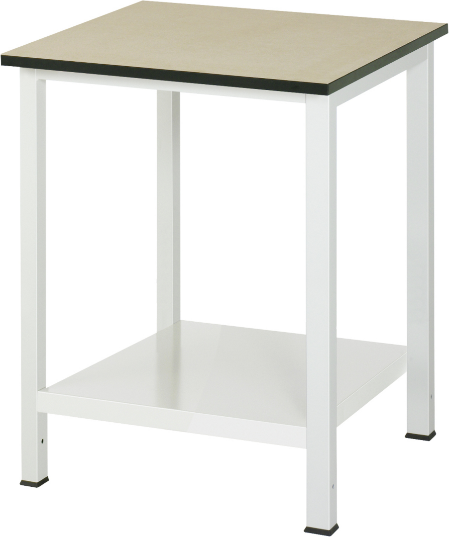 - 4-Fuß Schweißgestell mit zwei Gestellfußpaaren aus Profil-Stahlrohr (45x45x2 mm) inkl. Tiefenverstrebungen (oben und unten). Gestellfüße unten mit Abschlusselement inkl. Anti-Rutsch-Noppe für sicheren Stand. Querstreben aus C-Profil (40x40x2 mm) oben unter der Arbeitsplatte (vorne, mitte, hinten) sowie Ablageboden unten (Tiefe 650 mm hinten bündig miTSystemunterbau, Fachhöhe 620 mm).