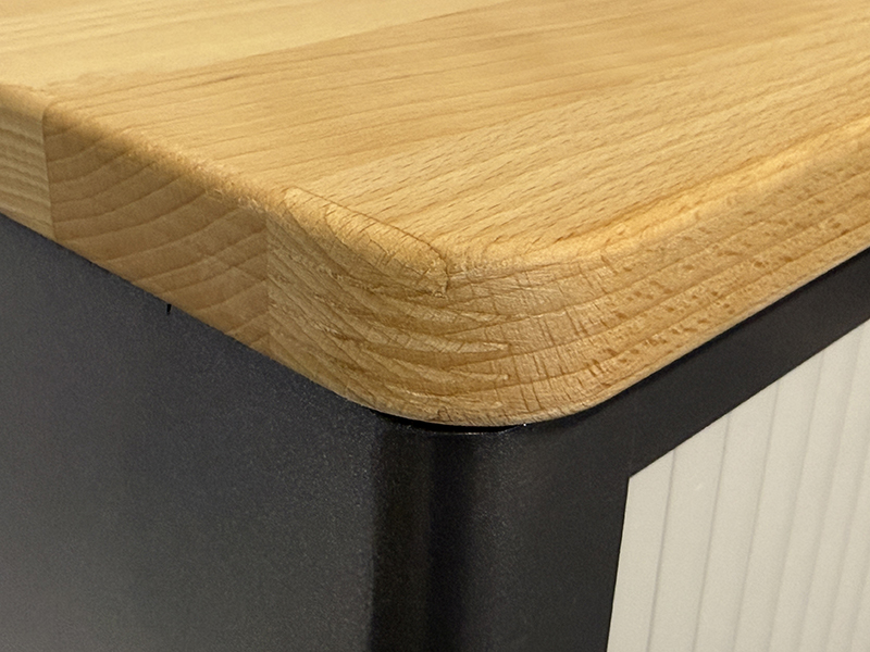 - Schrank oben inkl. einer Buche-Massiv-Arbeitsplatte, Stärke 25 mm.